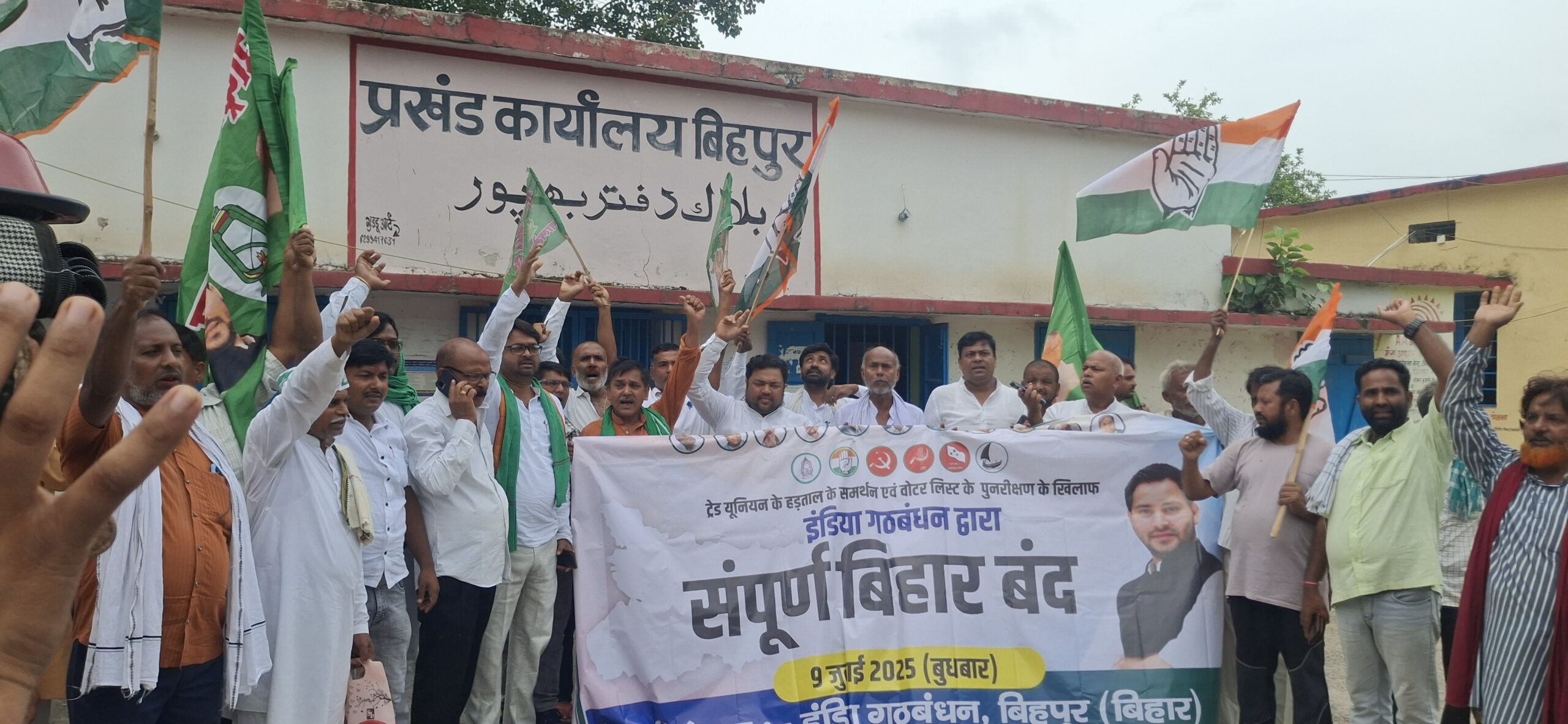 बिहपुर में महागठबंधन का जोरदार प्रदर्शन, शांतिपूर्ण रहा बंद