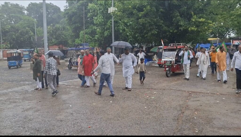 बिहपुर, बुधवार: महागठबंधन के आह्वान पर बिहपुर, खरिक और नारायणपुर प्रखंडों में केंद्र व राज्य सरकार की नीतियों के विरोध में सफल और शांतिपूर्ण बंद का आयोजन किया गया। बिहपुर में महागठबंधन के नेताओं और कार्यकर्ताओं ने प्रखंड मुख्यालय से जोरदार नारेबाजी करते हुए जुलूस निकाला। बंद समर्थकों की अपील पर स्थानीय दुकानदारों ने स्वेच्छा से अपनी दुकानों को बंद कर समर्थन दिया।