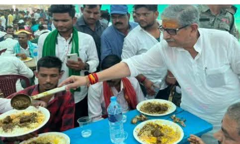 माथे पर तिलक और हाथ में मटन का कलछुल केद्रीय मंत्री और JDU नेता ललन सिंह ने लखीसराय के सूर्यगढ़ा में सावन (श्रावण) महीने के दौरान एक मटन पार्टी आयोजित की, जिसे लेकर बिहार में नई बहस छिड़ गई है
